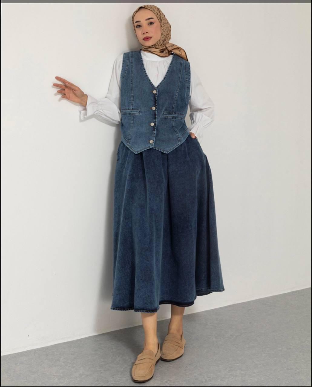 Ein Denim Rock & Westen-Set ist die perfekte Kombination aus lässiger Eleganz und zeitlosem Stil. Es bietet unendliche Styling-Möglichkeiten und ist sowohl für den Alltag als auch für besondere Anlässe eine stilvolle Wahl.