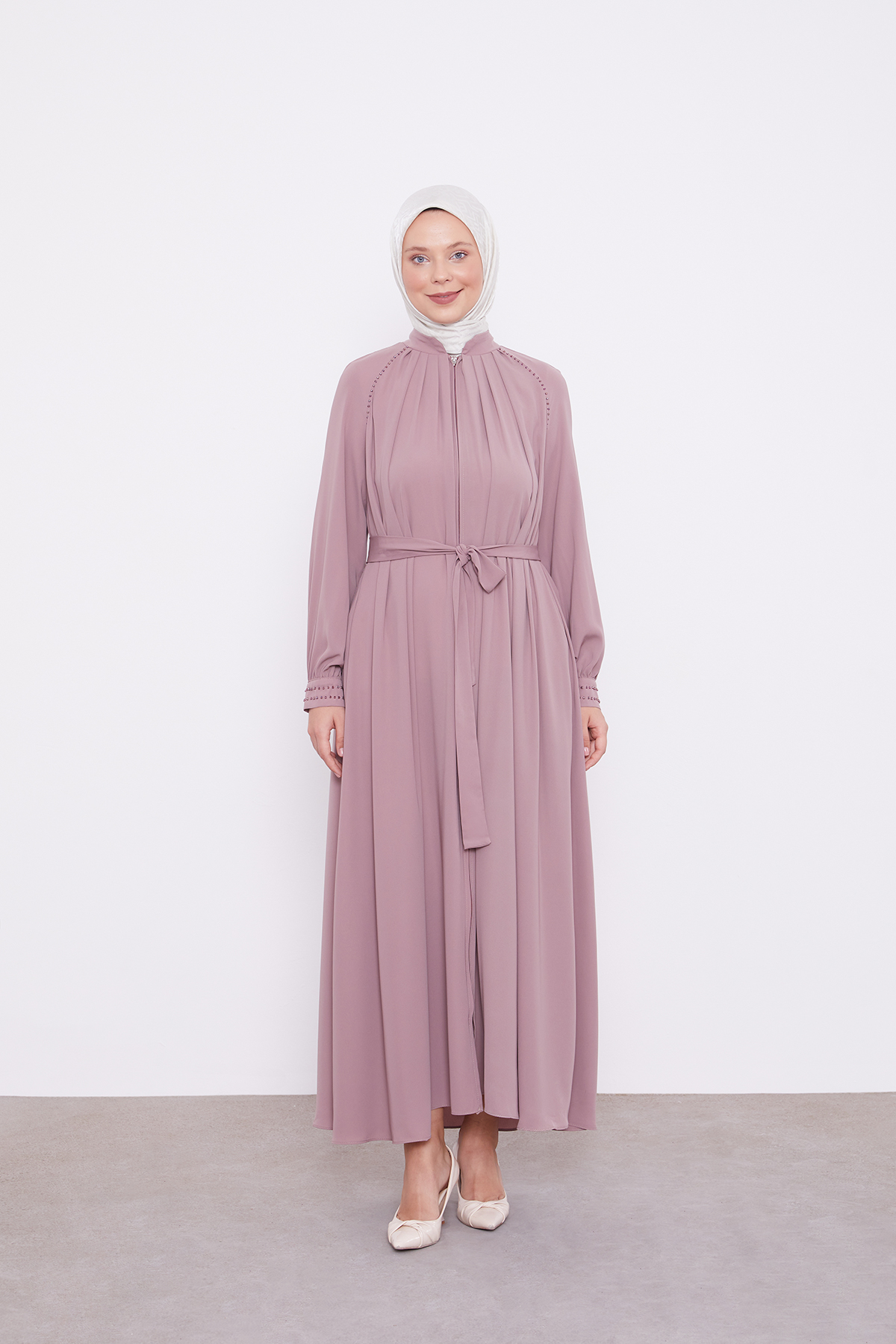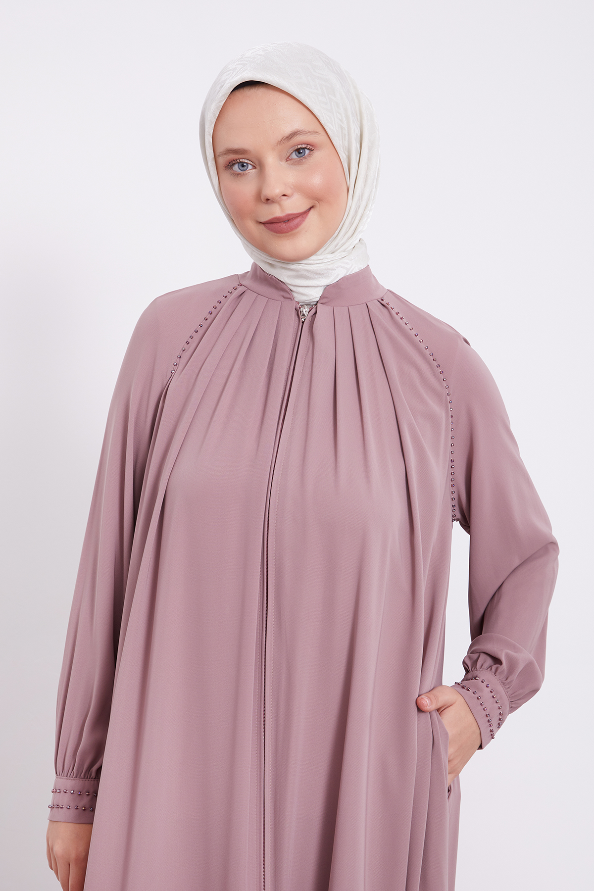 Ein Ferace mit Perlenverzierung ist eine perfekte Kombination aus traditioneller Eleganz und modernem Luxus, die jedes Outfit aufwertet. Der klassische Ferace, bekannt für seine weite, bequeme Passform und seinen eleganten Schnitt, wird hier durch zarte Perlenapplikationen veredelt, die dem Mantel eine raffinierte und edle Note verleihen. Diese Perlen können an den Ärmelabschlüssen, dem Kragen oder entlang des Saums platziert sein, oder auch in auffälligen Mustern über den gesamten Mantel verteilt werden, was dem Ferace eine glamouröse Ausstrahlung verleiht. Hergestellt aus fließenden Stoffen wie Chiffon, Krepp oder Seide, sorgt der Ferace für hohen Tragekomfort und eine elegante Silhouette. Für kältere Monate sind auch Varianten aus Wolle oder Kaschmir erhältlich, die zusätzlich Wärme bieten. Farblich ist der Ferace mit Perlenverzierung besonders vielseitig – von klassischen Tönen wie Schwarz, Dunkelblau oder Beige bis hin zu modernen Pastelltönen und eleganten Erdtönen. Der Perlenbesatz kann in Ton-in-Ton gehalten sein, um eine subtile Eleganz zu bewahren, oder in Kontrastfarben gestaltet werden, um ein auffälligeres Design zu kreieren. Dieser Ferace eignet sich nicht nur für formelle Anlässe, sondern lässt sich auch im Alltag zu schlichten Tuniken und Hosen kombinieren, um einen eleganten, aber dennoch komfortablen Look zu erzielen. In Kombination mit eleganten Schuhen oder Sneakers entsteht ein vielseitiges Outfit, das sowohl für den Alltag als auch für besondere Veranstaltungen perfekt ist. Ein Ferace mit Perlenverzierung ist somit ein zeitloses, modisches Kleidungsstück, das Eleganz und Komfort vereint und in keiner stilbewussten Garderobe fehlen sollte