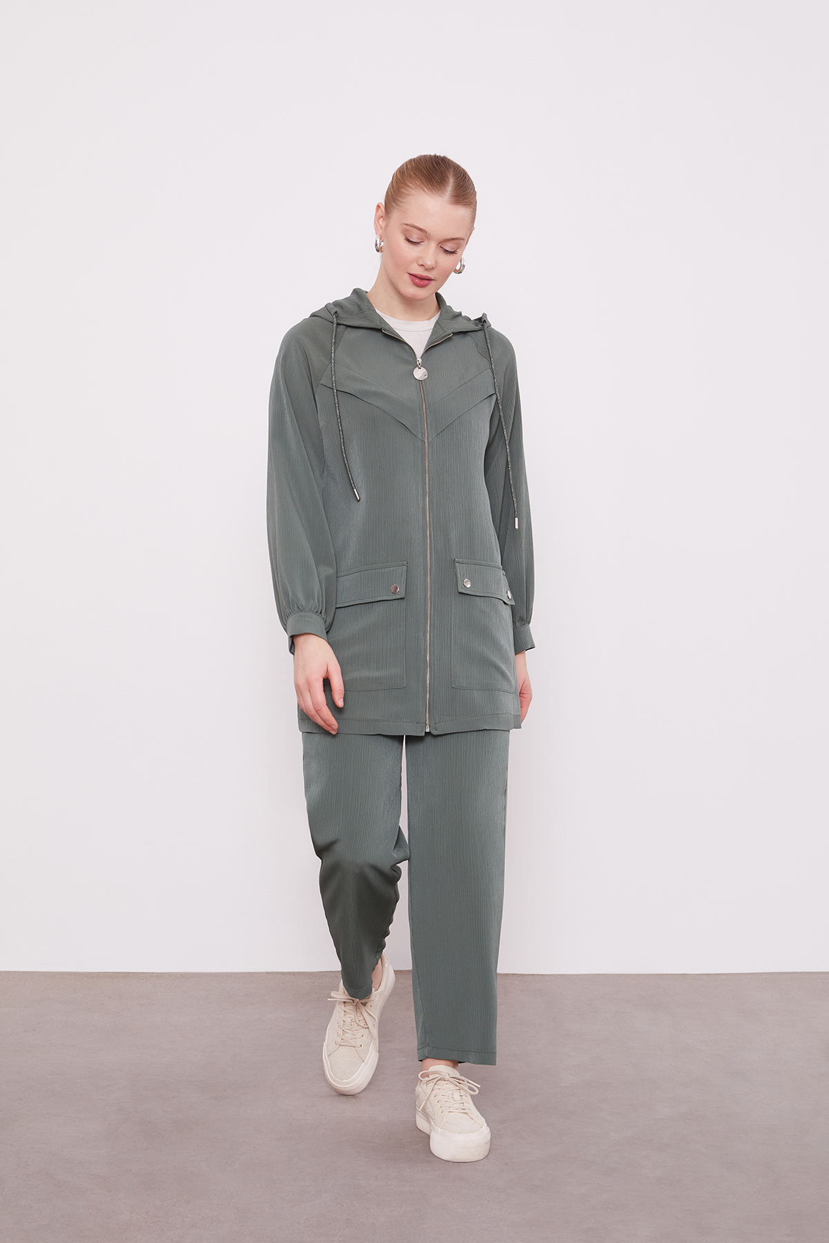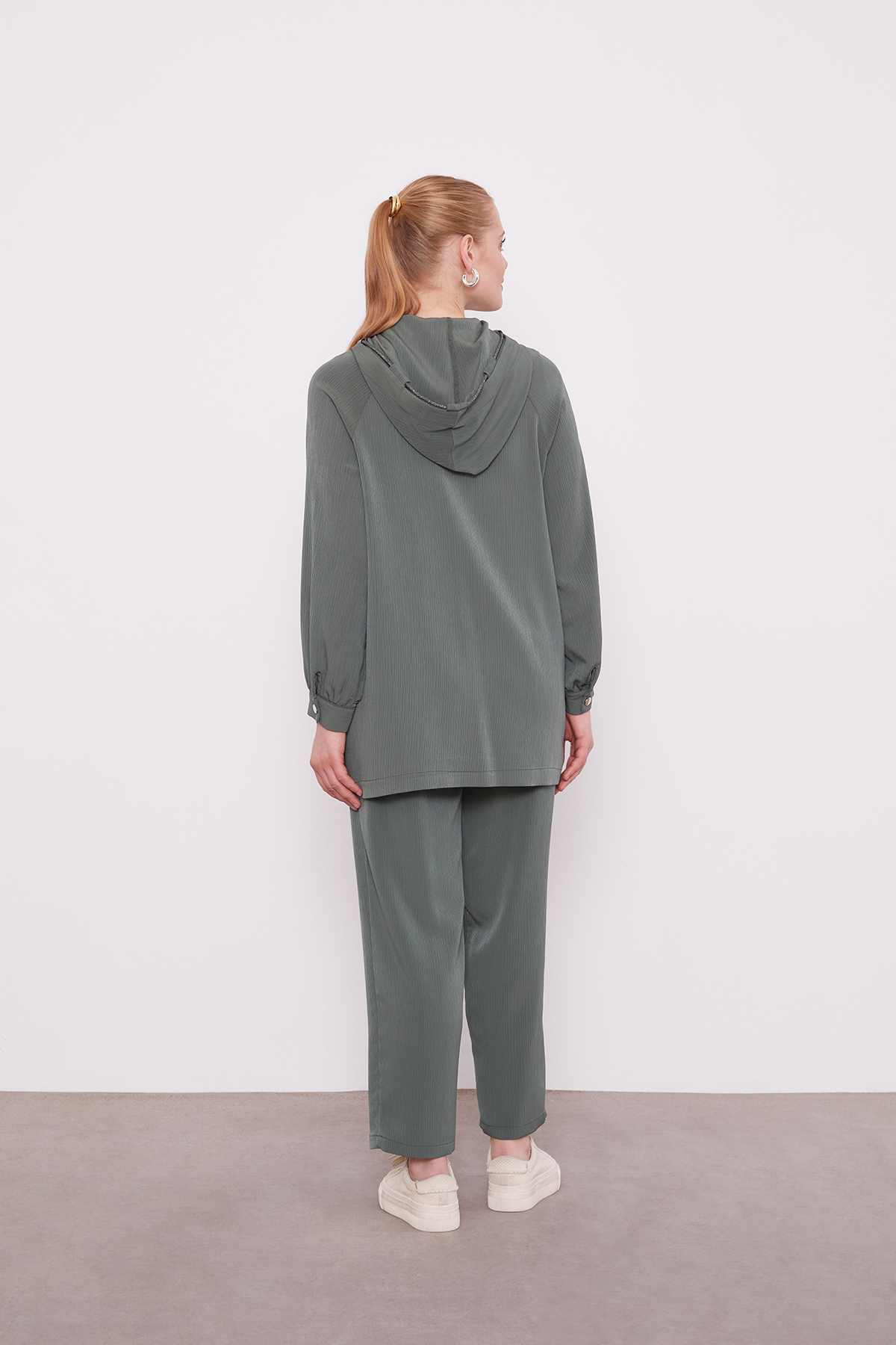 Ein komfortables Kapuzen-Set ist die perfekte Wahl für alle, die sowohl Bequemlichkeit als auch modischen Stil suchen. Dieses Set besteht typischerweise aus einer bequemen Kapuzenjacke und einer passenden Hose, die zusammen ein entspanntes, aber dennoch trendiges Outfit bilden. Die Jacke hat eine Kapuze, die zusätzlichen Komfort und Schutz bei wechselhaftem Wetter bietet, während der lockere Schnitt für maximale Bewegungsfreiheit sorgt. Meistens aus weichen Materialien wie Baumwolle, Jersey oder Fleece gefertigt, fühlt sich ein solches Set angenehm auf der Haut an und eignet sich perfekt für den Alltag, Sport oder entspannte Freizeitaktivitäten. Ein komfortables Kapuzen-Set ist nicht nur praktisch, sondern auch vielseitig. Es lässt sich hervorragend mit Sneakers oder lässigen Schuhen kombinieren und kann sowohl zu Hause getragen werden, als auch für einen schnellen Stadtbummel oder Sporteinheit. Das Set ist in verschiedenen Farben und Designs erhältlich – von schlichten Einfarbigen über sportliche Logos bis hin zu gemusterten Varianten. Der elastische Bund und die Kordeln an der Kapuze und der Hose sorgen für zusätzlichen Komfort und eine individuelle Passform. Für kältere Tage kann das Set mit einer Jacke oder einem Mantel ergänzt werden, während es in wärmeren Monaten auch alleine getragen werden kann. Der sportliche Look des Kapuzen-Sets lässt sich leicht mit minimalistischen Accessoires wie einer lässigen Tasche oder einer Mütze abrunden. Zusammengefasst ist ein komfortables Kapuzen-Set der Inbegriff von Bequemlichkeit und Stil, das sich mühelos in verschiedene Alltagsoutfits integrieren lässt und für eine Vielzahl von Freizeitaktivitäten geeignet ist. Es bietet eine perfekte Balance zwischen Entspannung und Trendbewusstsein und ist somit ein Must-have für jede moderne Garderobe.