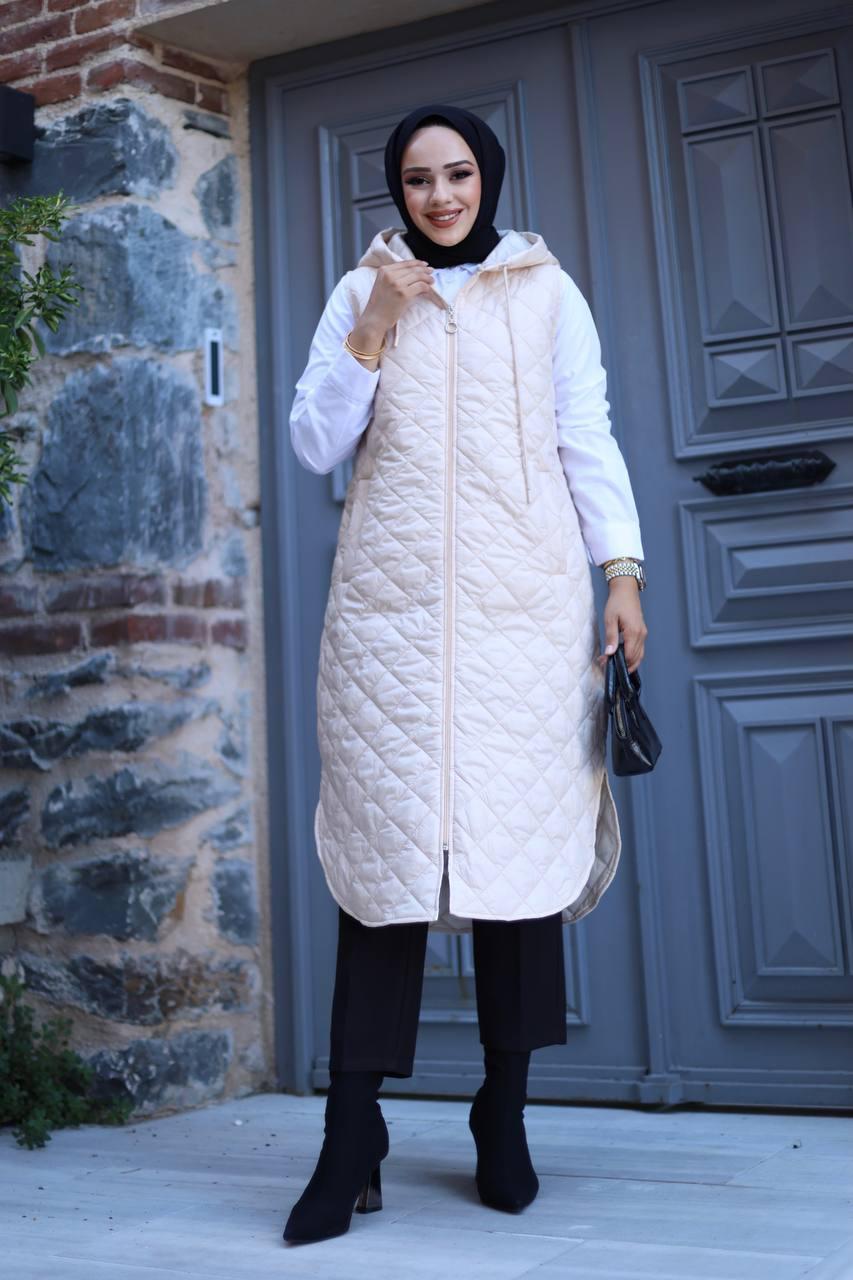 Die lange Kapuzenweste ist ein elegantes und funktionales Kleidungsstück, das sich ideal für die Übergangszeit eignet. Sie kombiniert die Vorteile einer Weste mit der praktischen Kapuze, die zusätzlichen Schutz vor Wind und Wetter bietet. Diese Art von Weste ist in verschiedenen Materialien und Stilen erhältlich, wodurch sie sich leicht in jede Garderobe integrieren lässt. Ob über einem langen Ärmelshirt oder einem Kleid getragen, die lange Kapuzenweste verleiht jedem Look einen lässigen und modischen Touch. Sie ist perfekt für den Alltag, für Spaziergänge im Freien oder als zusätzliche Schicht an kühleren Tagen. Die Vielseitigkeit und der Komfort dieser Weste machen sie zu einem unverzichtbaren Bestandteil jeder Damen- oder Herrengarderobe.
