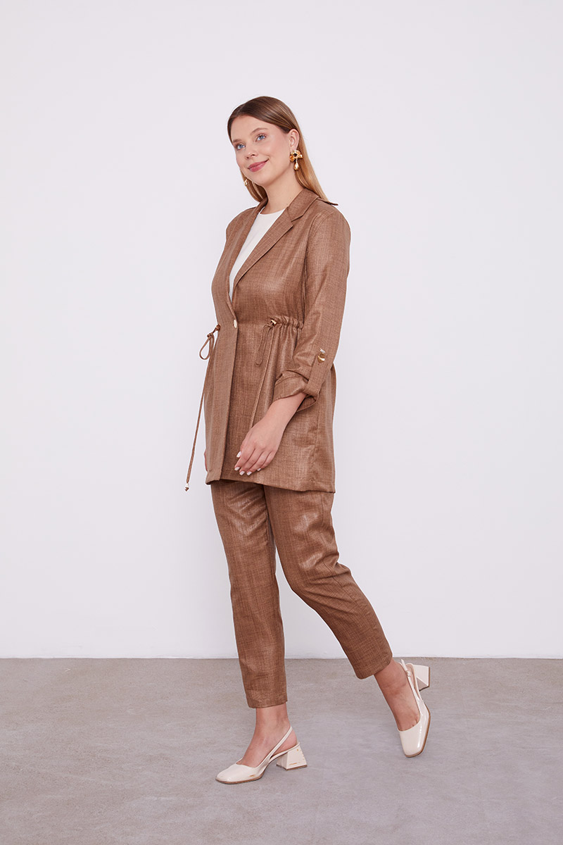 Ein moderner Anzug ist ein unverzichtbares Kleidungsstück, das sowohl im Berufsleben als auch bei formellen Anlässen eine stilvolle Wahl darstellt. Im Vergleich zu traditionellen Anzügen zeichnet sich der moderne Anzug durch einen schmaleren Schnitt, innovativere Stoffe und oft unkonventionelle Details aus. Die Jacke ist häufig taillierter und kürzer als bei klassischen Modellen, während die Hose eine schmalere Passform hat, die die Silhouette betont und gleichzeitig für Bewegungsfreiheit sorgt. Moderne Anzüge gibt es in einer Vielzahl von Farben und Mustern. Während dunkle, einfarbige Varianten wie Schwarz, Marineblau oder Anthrazit nach wie vor die Klassiker sind, erfreuen sich auch hellere Töne wie Grau, Beige und Pastellfarben immer größerer Beliebtheit. Besonders im Sommer sind leichte Materialien wie Leinen oder Baumwolle gefragt, die den Tragekomfort erhöhen, ohne die stilvolle Erscheinung zu beeinträchtigen. Für mutigere Fashionistas kommen auch auffällige Muster, wie feine Karos oder Streifen, oder sogar ausgefallene Farben wie Dunkelgrün oder Bordeaux ins Spiel, die den Anzug zu einem echten Hingucker machen. Ein moderner Anzug zeichnet sich auch durch seine Vielseitigkeit aus. Während er traditionell zu Business-Meetings oder formellen Anlässen getragen wird, lässt er sich auch hervorragend für weniger formelle Gelegenheiten kombinieren. Mit einem schlichten T-Shirt oder einem Rollkragenpullover und sportlichen Sneakern lässt sich der Anzug problemlos in einen Casual-Look verwandeln. Accessoires wie eine minimalistische Uhr, Lederschuhe und eine passende Tasche runden das Outfit ab und verleihen ihm eine moderne, urbane Note. Zusammenfassend lässt sich sagen, dass der moderne Anzug eine perfekte Balance zwischen Tradition und Innovation bietet. Er vereint klassische Eleganz mit zeitgemäßem Design und ist somit ein vielseitiges Kleidungsstück, das sowohl im Job als auch in der Freizeit zu überzeugen weiß.